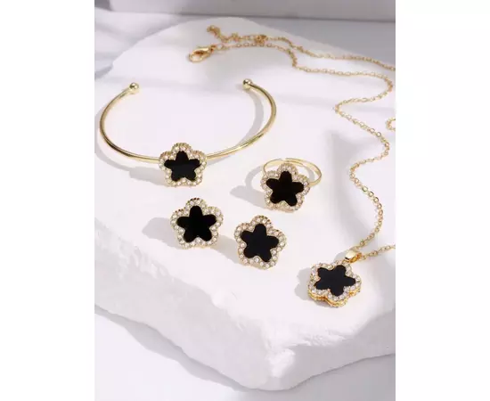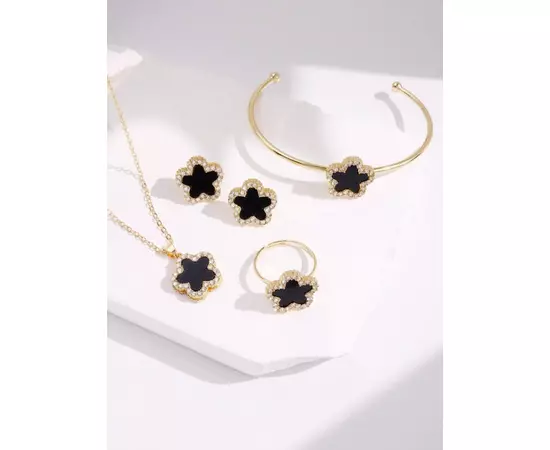 Set De Bijuterii Cu Floare, 5 Piese, Negru si Auriu - sj81165