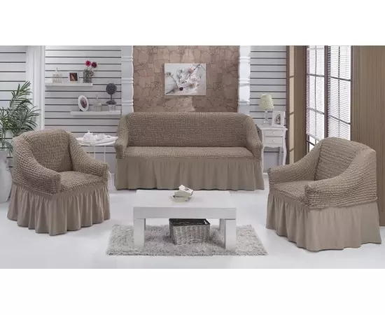 Set huse 211, pentru canapea 2 locuri si 2 fotolii Beige inchis - HL201