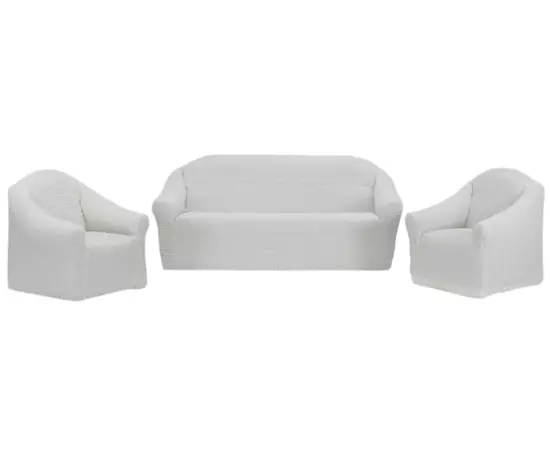 Huse Elastice si Creponate fara Volane, Canapea 3 Persoane + 2 Fotolii, Alb - HC25