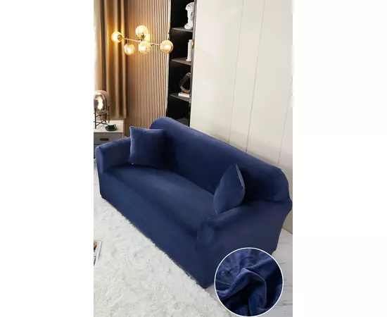 Set Huse Canapea 3 Locuri, Canapea 2 Locuri si 1 Fotoliu Catifea, Bleumarin - JOJ463