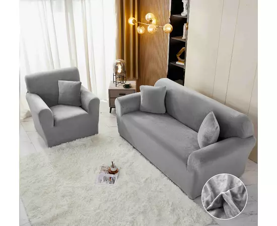 Set Huse Canapea 3211 Catifea Gri deschis - JO896