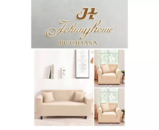 Set Huse Canapea 3 Locuri si 2 Fotolii Elastice Uni, Cream - SIPR31107