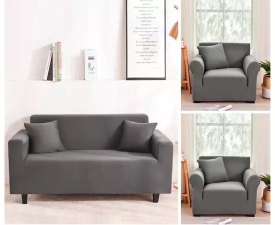 Set Huse Canapea 3 Locuri si 2 Fotolii Elastice Uni, Gri - SIPR31108