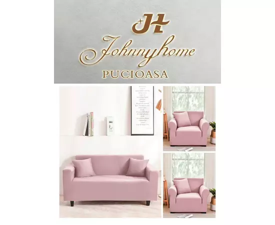 Set Huse Canapea 3 Locuri si 2 Fotolii Elastice Uni, Roz - SIPR31102