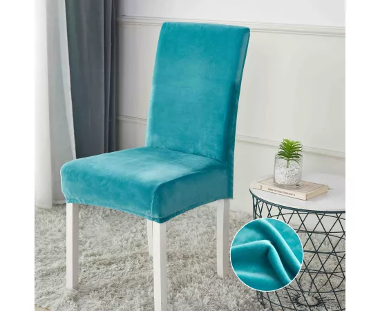 Set Huse Elastice pentru Scaun, 6 Piese, Catifea, Turquoise-JO225