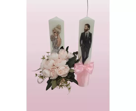 Set 2 Lumanari pentru Nunta cu Flori si Fundita - LN10