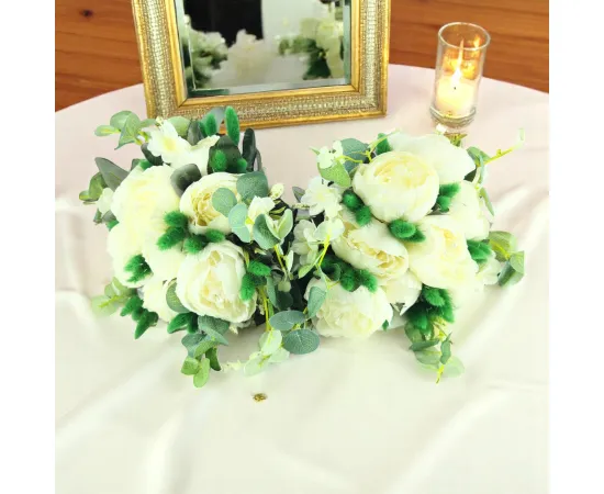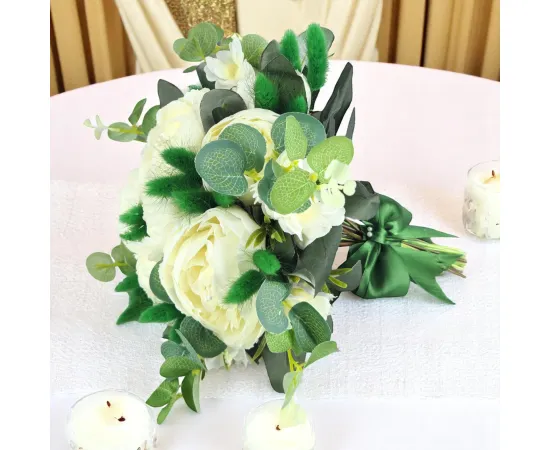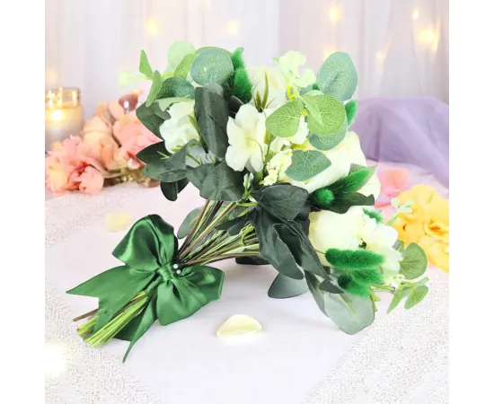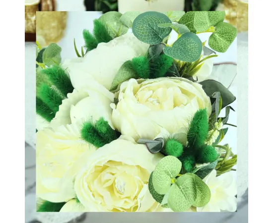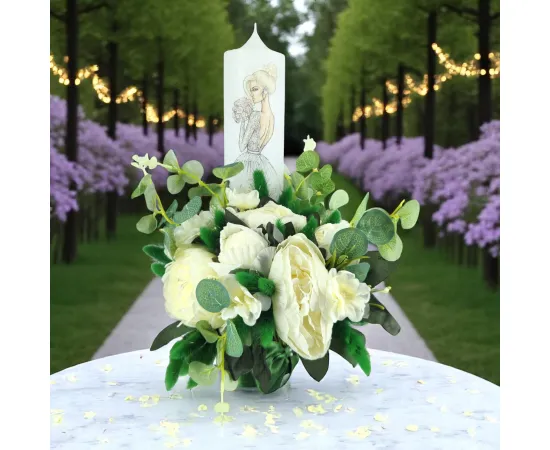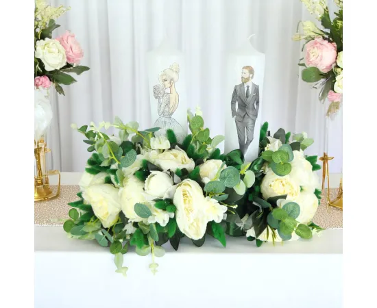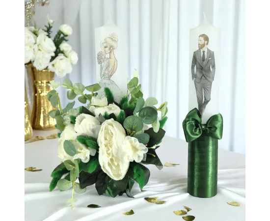 Set 2 Lumanari si 2 Buchete pentru Nunta cu Flori Artificiale, Green Imperial - LN20