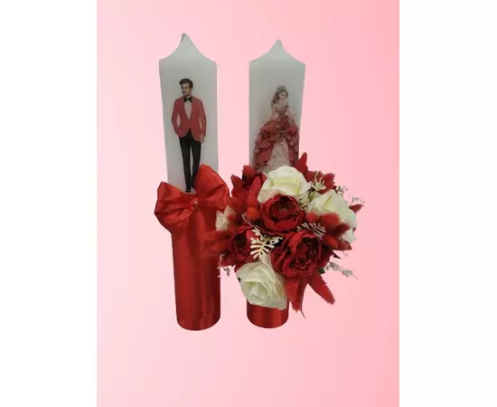 Set 2 Lumanari pentru Nunta cu Flori Artificiale, Red Imperial - LN23