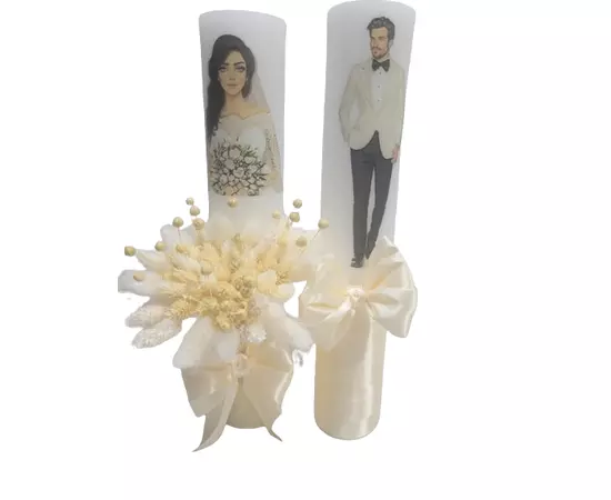 Fiecare lumanare din acest set este împodobită cu flori stabilizate, care sunt flori naturale tratate special pentru a păstra frumusețea lor și a rezista în timp fără a se ofili. Aceste flori stabile oferă o eleganță subtilă și o notă romantică, perfectă pentru atmosfera unei nunți.