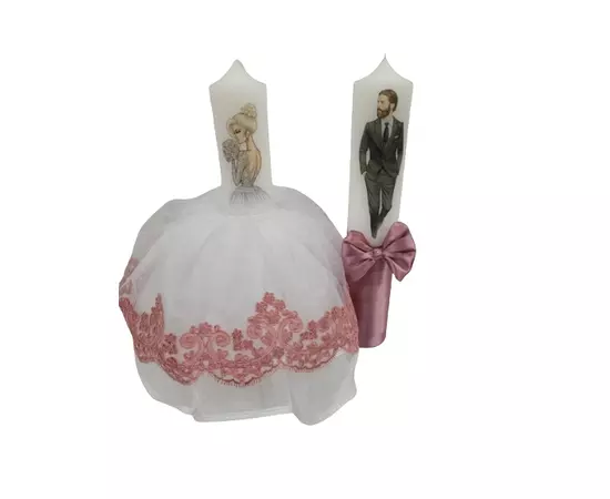 Set 2 Lumanari pentru Nunta cu Rochita si Dantela - LN28