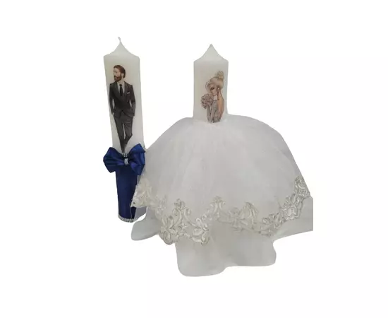 Set 2 Lumanari pentru Nunta cu Rochita si Dantela - LN29