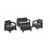 Setul este format dintr-o masa, doua scaune tip fotoliu si o canapea de doua locuri si poate fi utilizat atat in interior cat si la exterior ca mobilier de gradina, mobiler pentru terase, cafenele sau centre comerciale.