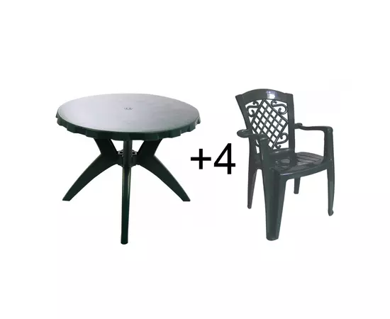 Set masa rotunda, cu 4 scaune, pentru gradina, din plastic, verde