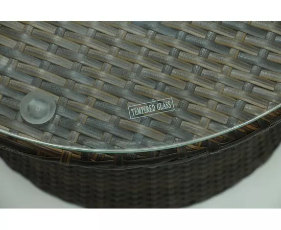 Masa si fotoliile au structura din aluminiu acoperit cu impletitura de ratan artificial rezistent la actiunea factorilor de mediu.