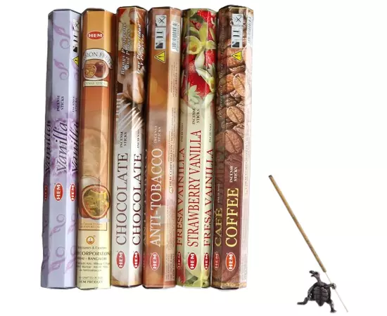 Set Mixt 120 Betisoare Parfumate,HEM, Vanilla,Pasion Fruit, Chocolate, Anti-Tabacco, Strawberry Vanilla, Coffee+Suport Broscuta Testoasa Cadou