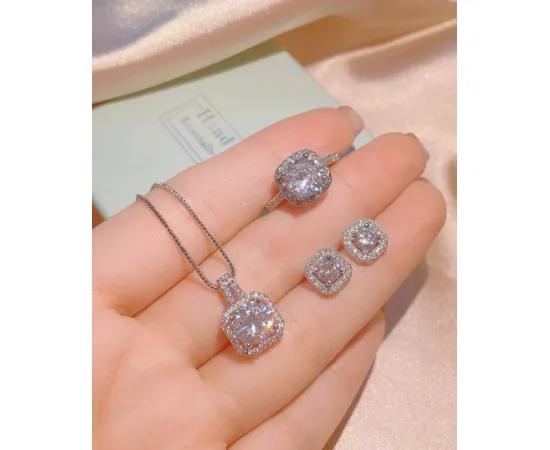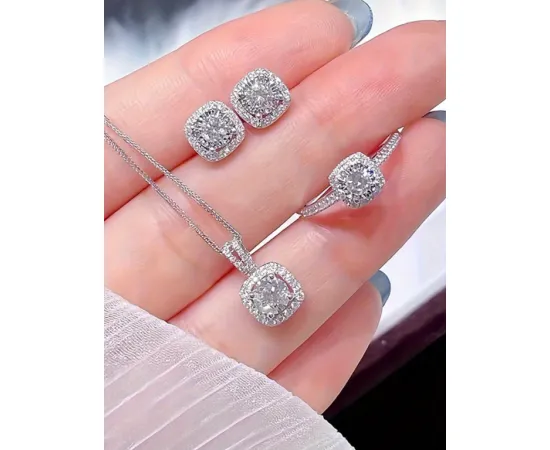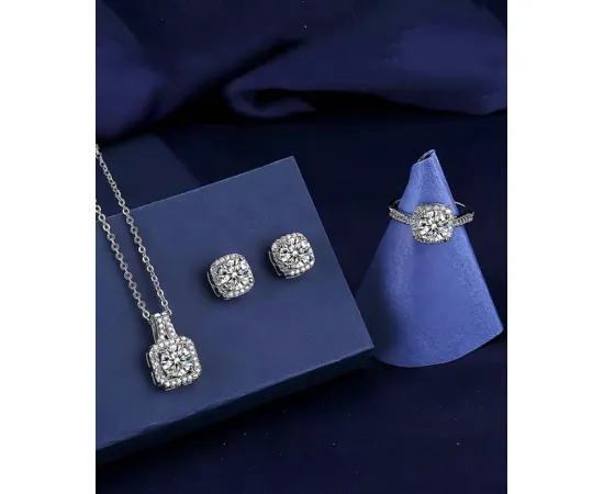 Set Moon, Colier, Cercei si Inel, Argintiu - 261131