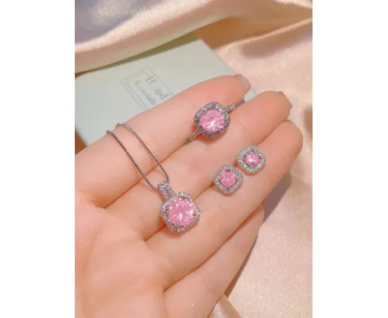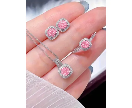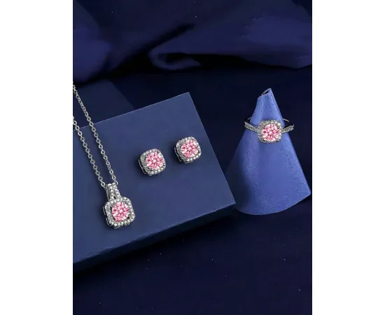 Set Moon, Colier, Cercei si Inel, Roz si Argintiu - 223226