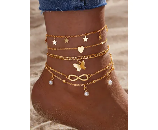 Transformă fiecare pas într-o declarație de stil cu Setul Naya, compus din 5 brățări de picior cu finisaj auriu, atent alese pentru a se completa perfect. De la lanțuri fine și minimaliste, până la detalii delicate precum stelute si fluturasi, acest set aduce un vibe boem și elegant în orice ținută.