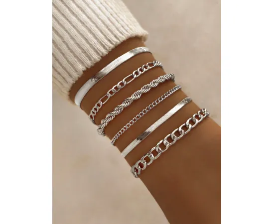 Exprima-ți stilul nonconformist cu acest set de 6 brățări moderne, în tonuri reci argintii, ce combină perfect minimalismul urban cu accente punk-chic. Designul versatil le face ideale pentru ținutele zilnice – de la casual edgy până la streetwear sofisticat.