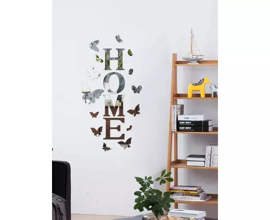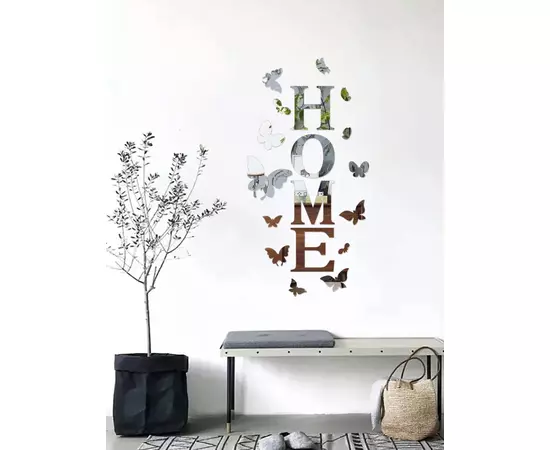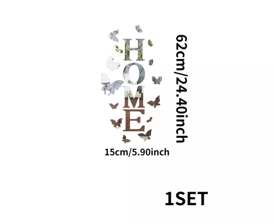 Set Oglinzi Deorative Audoadezive, Formă Home și Fluturi, 15x62 cm