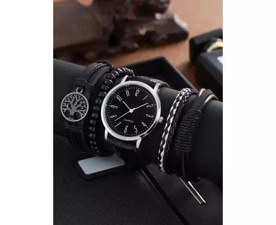 Set pentru Barbati 5 Piese, Ceas si 4 Bratari, Negru - 12699