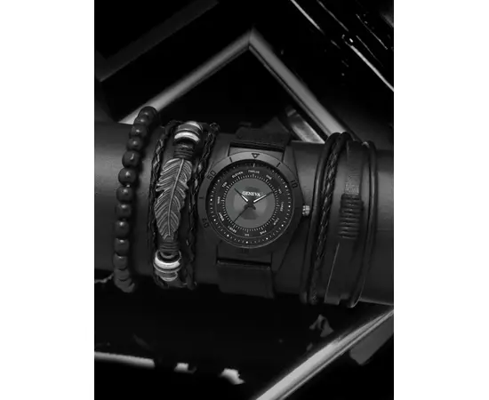 Set pentru Barbati Ceas si 3 Bratari, Negru