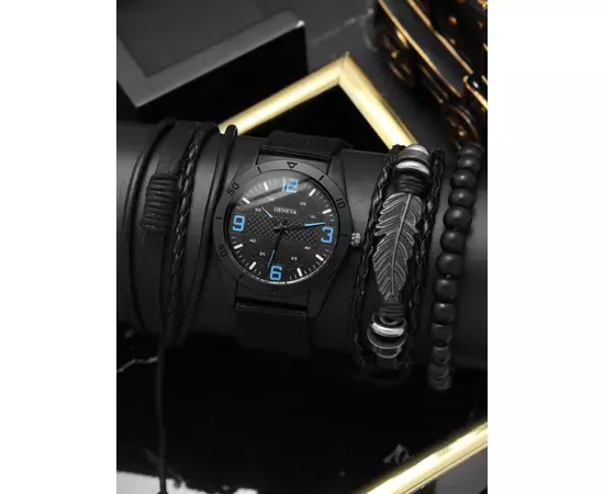 Set pentru Barbati Ceas si 3 Bratari, Negru - 42118