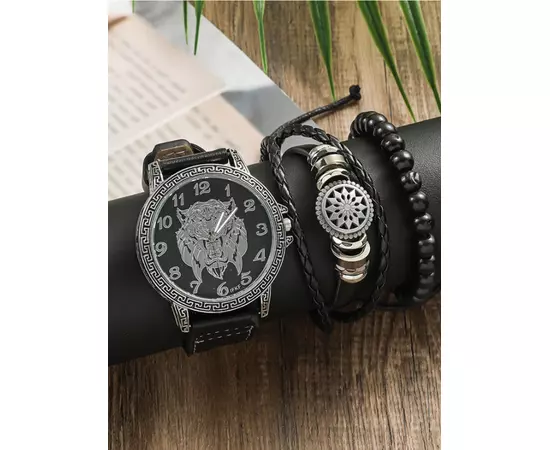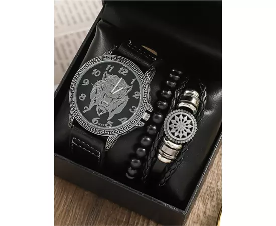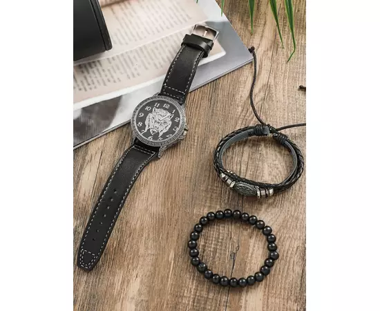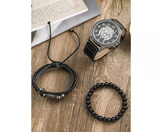 Set Pentru Barbati, Ceas si 3 Bratari, Negru- 51505