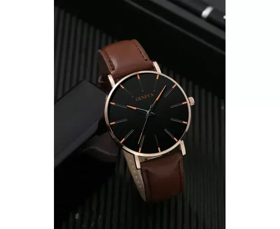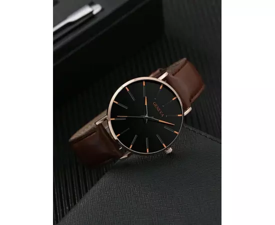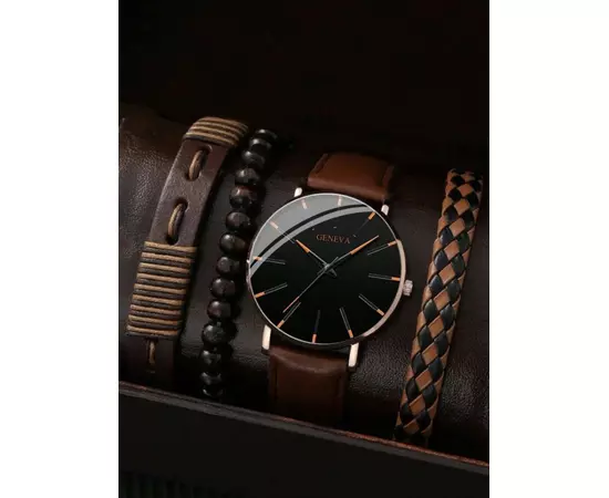 Set Pentru Barbati, Ceas si 3 Bratari, Negru, Maro Inchis si Deschis 02899