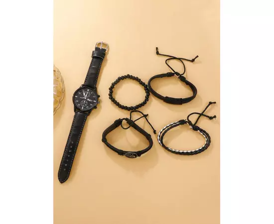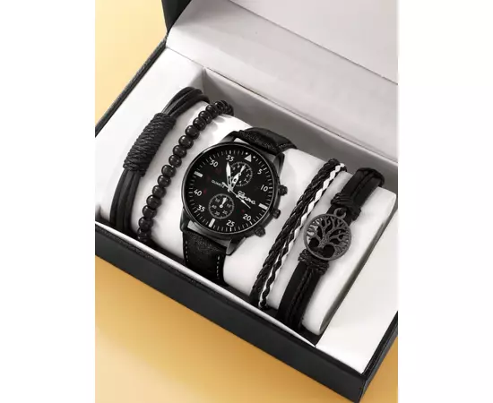 Set pentru Barbati Ceas si 4 Bratari, Negru- 97816