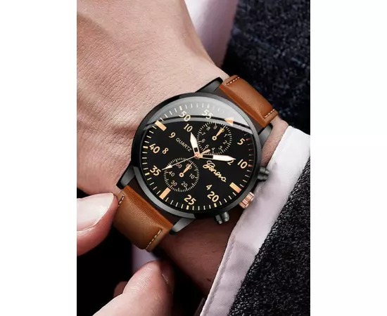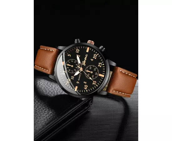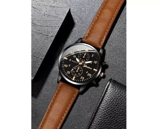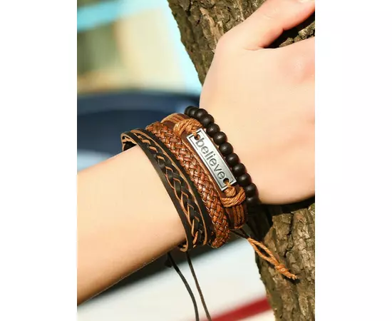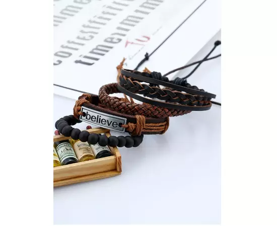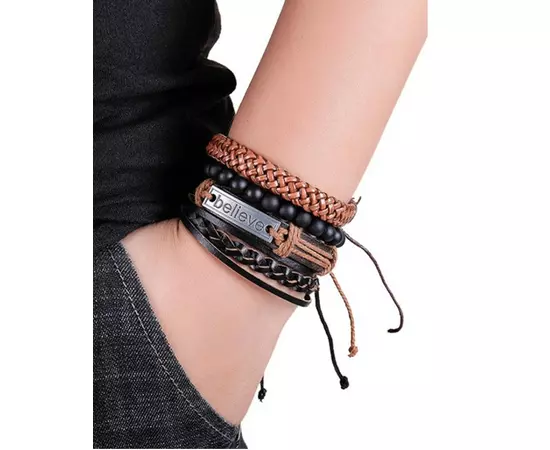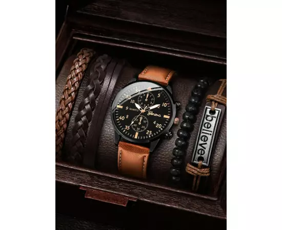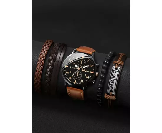 Set Pentru Barbati, Ceas si 4 Bratari, Negru, Maro Inchis si Deschis 62222