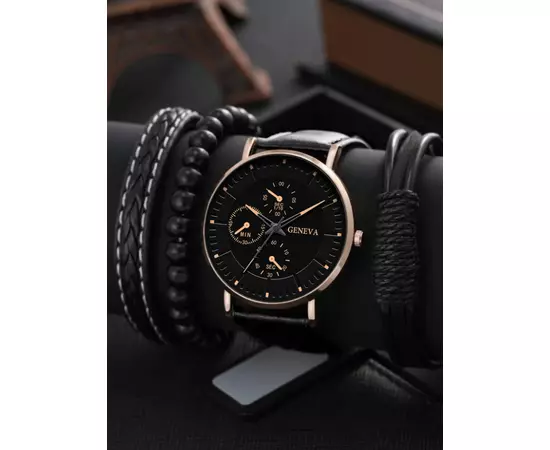 Set pentru Barbati Ceas si 3 Bratari, Negru- 43578