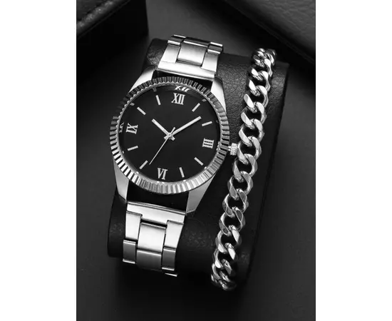 Set Pentru Barbati, Ceas si Bratara Argintii- 17844