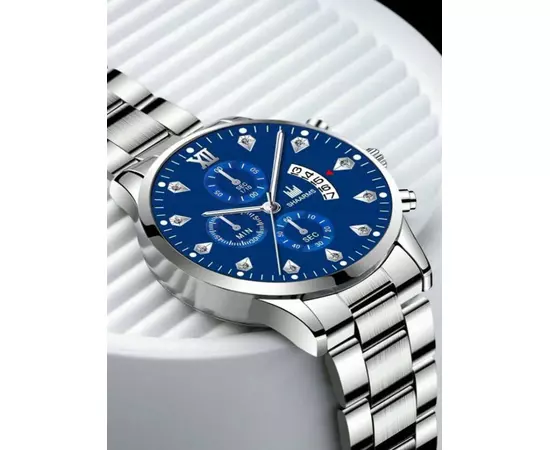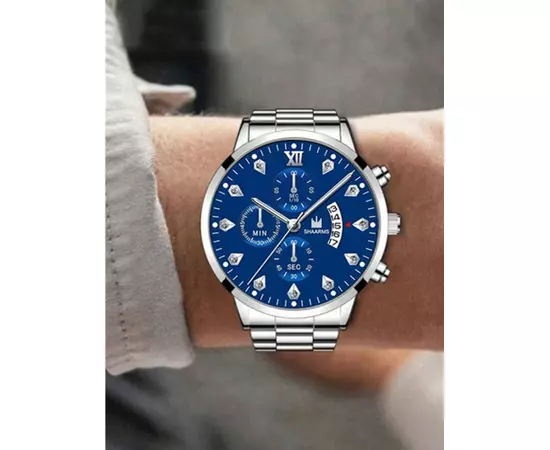 Set Pentru Barbati, Ceas si Bratara, Argintiu si Albastru - 55633