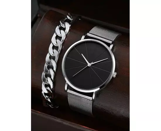 Set Pentru Barbati, Ceas si Bratara, Argintiu si Negru 44434