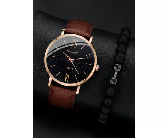 Set Pentru Barbati, Ceas si Bratara, Maro si Negru 52144