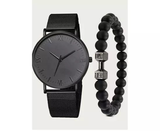 Set Pentru Barbati, Ceas si Bratara, Negru 26341