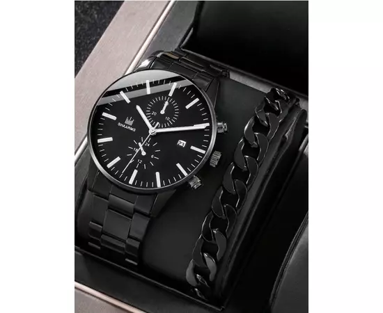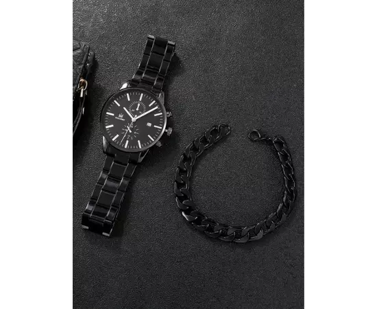 Set Pentru Barbati, Ceas si Bratara, Negru - 62881