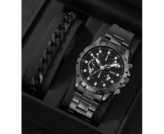 Set pentru Barbati Ceas si Bratara, Negru- 65334