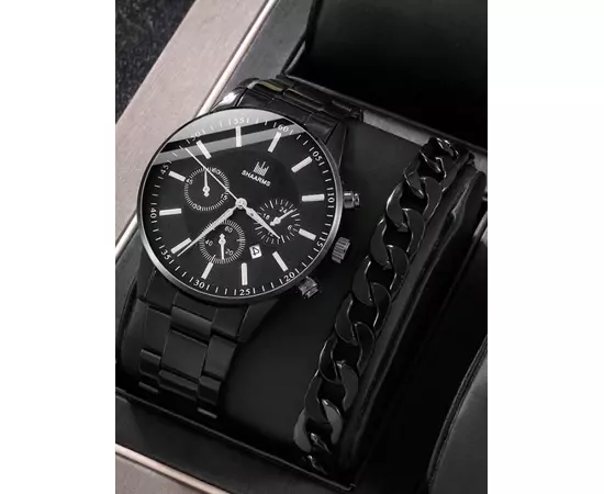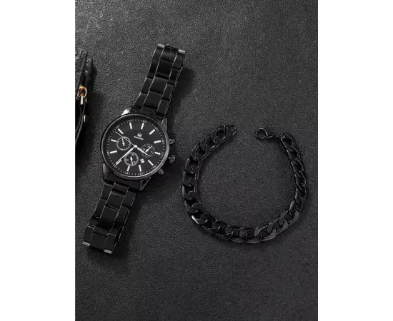 Set Pentru Barbati, Ceas si Bratara, Negru - 65913
