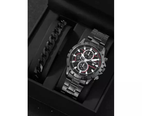 Set Pentru Barbati, Ceas si Bratara, Negru 83208