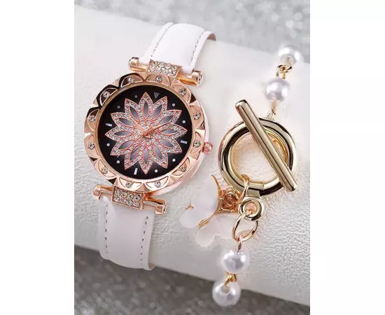 Set Pentru Dama, Ceas si Bratara Alb- 21398