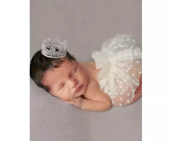 Set Pentru Sedinta Foto Nou Nascut Printesa -Fusta si Coronita- Alb
