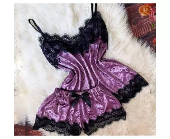 Set Pijama de Dama 2 Piese din Catifea Mov