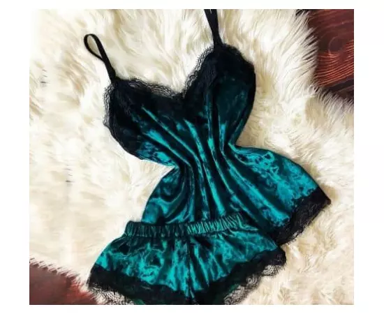 Set Pijama de Dama 2 Piese din Catifea Turcoaz