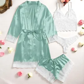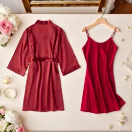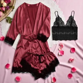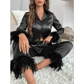 Set Pijama de Dama 2 Piese din Satin, Negru - MEI82