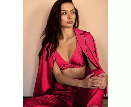 Set Pijama de Dama 3 Piese din Satin Rosu