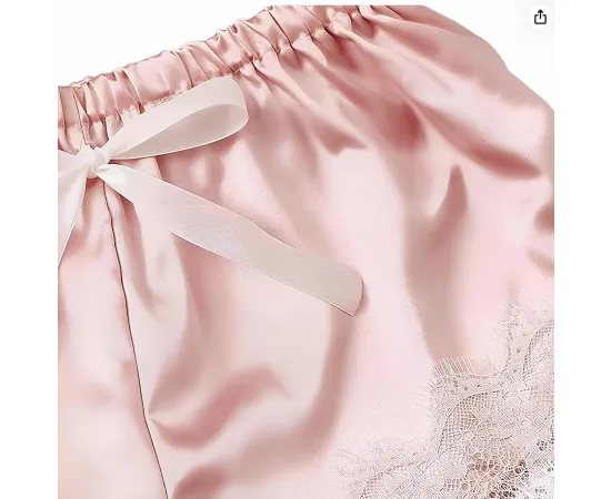Acest set 3 piese din satin culoare somon, cu detalii delicate de dantelă, este alegerea ideală pentru serile în care vrei să te simți frumoasă, confortabilă și încrezătoare.