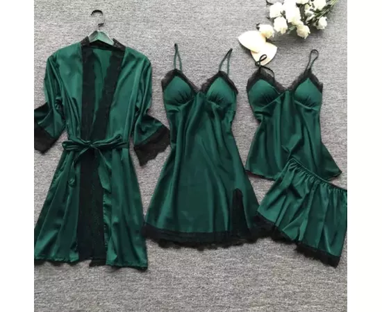 Set Pijama de Dama 4 Piese din Satin - ANI01