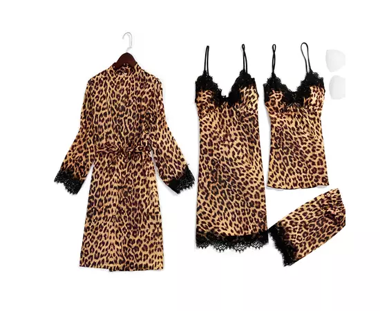 Set Pijama de Dama 4 Piese din Satin, Culoare Animal Print - ANI110